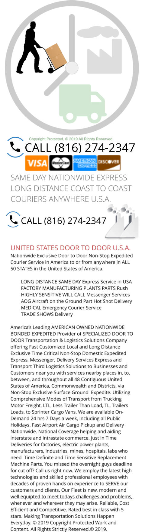 rush export shipment to charter or commercial airplane at an airport of your choice? Yes we can help with that. You have a domestic import that just cleared us customs at a seaport ( east or west coast ) or a domestic oor international airport airfield that needs to be expedited to factory✅ manufacturing or power plant now. yes✅ we can help with critical customized delivery to a point of your choosing✅ we can even pick up the paper work for you. Late payroll? We can help with that using our secure hand carry delivery. Forgot you phone or laptop computer✅ tablet✅ pad✅ or medication? Yes✅ We can securely pick it up and deliver to wherever you are. You have a critical time definite trip and need your passport and visa delivered to you. Yes✅ we can do that. You missed the over night shipping deadline because you are running late and their offices are closed for the late night✅ weekend and holidays? Yes We can help we are the oops guys that can save your delivery. High value aircraft✅ aerospace or high technology parts for shift down manufacturing that needs to be delivered across country coast to coast or in between or across town or in town. You need just in time delivery? Yes we can do that. Need labels✅ sleeves labels printing supplies delivered for production? Yes can help. You need a secure motor carried for your high value life science products expedited delivery? Yes✅ we can help. Need your medical pharmaceutical pharma ingredients and finished products deliery on an emergency basis? Yes we can help. Worried about your bids✅ documents✅ confidential usb flash drive✅ rfi✅ grants and proposals making your deadline. Yes we can help. Call us for a fast no obligation or pressure We welcome new business and customers and welcome back returning recurring ones. Need your missing ingredient or mis-routed shipment today. Yes✅ we can help you. Temperature controlled for special paint coating expedited non-stop same day delivery. Forgot your ticket? We can help. Need a hand carry air courier for electric power and auto manufacturing plants critical parts? Yes we can help✅ we are a verified local business with national reach and network offices on the left and right coasts and in anywhere and everywhere in between at anytime open today open 24 hours. We offer services you need and want i and around the usa not like other guys who give you what you deserve. We strongly and firmly believe that we have decades of professional comprehensive combined skills and experience that qualifies to complete your tasks. You want a long distance company and local business that rated one of the best in the field that is highly recommended and trusted. Look no further you found us. You want positive results. We can help with proven efficient dependable anytime transportation solutions. During your search you will find transport information including official webpages images offices locations address terminals fast contact information phone numbers local courier delivery business documents view maps and driving directions places video air courier messenger hand carry delivery logistics shipping mailing moving air freight cargo motor trucking domestic cargo airlines next flight out temperature control auto power plant parts delivery Bonded Same Day Courier Service✅ Dependable Transportation Service✅ Secure Shipping Company✅ High Value Expedited Shipping Service✅ Highly Sensitive Same Day Delivery Services✅ Nationwide Shipping and Mailing Service✅ Coast to Coast Trucking Company✅ Cross Country Freight Forwarding Service✅ Premium Comprehensive Logistics✅ private banking delivery service✅ executive delivery service✅ express delivery✅ legal court filing hand delivery services✅ Rush Messenger Services✅ On-Demand Logistics Service✅ high confidential usb flash drive deliver service✅ original or certified notorized documents delivery service✅ Exclusive Moving Company✅ Corporate Moving and Storage Company✅ Parcel Service✅ Commercial Postal Service✅ Construction Job Site Delivery Service✅ Private Messenger Service✅ local delivery business✅ rescues for delayed or mis-routed shipments stranded at seaport✅ aiports✅ ports✅ trucking terminals docks✅ linehaul✅ direct point to point✅ open now today 24 Hours including holidays and weekends✅ exclusive non-stop long distance expedited services✅ on-